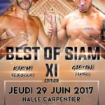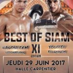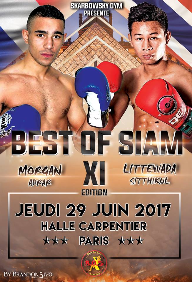 Wanchalerm, Janjao, and Littewada Part of Best of Siam XI Fight Card Posted on May 18, 2017May 18, 2017 By Angela Chang Best of Siam has held shows at Rajadamnern Stadium, and during their last show, they really put foreigner fighters up front and center, with foreigners being crowned new WBC and Rajadamnern Stadium titles.The French based promotion will hold its next show in Paris on June 29th. The current fight card guarantees this show to be fireworks with excellent fighters on it.Three Thai fighters will be flying to France to represent their national sport.Littewada Sitthikul will be up against Morgan Adrar. Littewada is a southpaw Muay Femur, extremely well rounded in all his major weapons, including boxing. He can hang with the other top, more well-known fighters, such as Saenchai. He fought Pakorn and Yodwicha, and can boast WMC and Channel 7 Stadium titles. Morgan Adrar just fought Pakorn in Lebanon, and has previously versed Saenchai, so he is not someone who will be messing around in the fight. Adrar is also a former WBC and WMC champion. Littewada usually fights at 63-64 kg and Adrar fights from 67-70 kg; the agreed weight has not yet been made public, but it will be interesting to see what they settle on.Janjao Sitsongpeenong, son of the famed trainer Jakkrit Fairtex, has been fighting since he was 5 years old and can boast over 200 fights in his experience. Elusive and tricky, he just had a fight at Lumpinee Stadium cancelled because his opponent found out who he was and did not want to fight him. Janjao will see Brice Delval in the ring. Delval is ranked #13 by WBC and fights under both Muay Thai and K1 rules.Wanchalerm Nuantong Snooker (ranked #2 by WBC) will be facing Youssef Boughanem. Wanchalerm has had over 300 fights and is an aggressive Muay Khao fighter. Boughanem is no stranger to fighting Thais as he lives in Thailand and has fought AND beat top competition, Thai and foreigner, including Sudsakorn. Youssef has over 200 fights himself and is the current Rajadamnern Stadium champion.Youssef Boughanem (MA) vs Wanchalerm Nuantong Snooker (TH) @ 72 kg Yassine Boughanem (MA) vs Alexandru Lungu (RO) @ 100+ kg Morgan Adrar (FR) vs Littewada Sitthikul (TH) Brice Delval (FR) vs Janjao Sitsongpeenong (TH) @ 63.5 kg Gaetan Dambo (FR) vs Karim Bezzouh (FR) Mathieu Guevara (FR) vs Célestin Mendes (FR) @ 63.5 kg Youssouf Binate (FR) vs Aiman Al Radhi (FR) @ 64 kg News best of siam xifight card