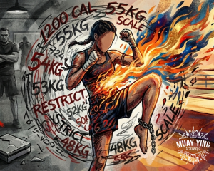 If I Could Start Over: What I’d Do Differently as a Fighter Healing from Disordered Eating Posted on January 21, 2026January 21, 2026 By Angela Chang The first time I decided to “go on a diet,” I was 12 years old.I went through puberty earlier than most of my peers, which meant I was always a bit taller and bigger. That made me incredibly self-conscious. My family members would comment on my weight, telling me I looked “chubby” sometimes. Looking back, I wasn’t. I was healthy. I was growing. I was strong. But I internalized every word.And how could I not? When the world around you is obsessed with subtraction, you learn very quickly that taking up space is a problem. It was the magazines on the rack, the “healthy” tips on the news, and the way every movie heroine looked like she was carved out of air. Every headline that screamed “Shred” or “Shrink” felt like a direct order. It seemed like everywhere I looked and turned, I was being told to make myself as small as possible, to the point of disappearing.Comments from family members who were glued to their ideals from their home countries, feeling like they were entitled to comment and judge my body as part of their conversations, rather than seeing it as both a transitional period of my life and a growing body being able to support itself.I also had acne. I felt ugly. And because I couldn’t control my skin, I fixated on the one thing I thought I could control: my weight. That morphed into a sick sense of control and a goal-oriented obsession with losing as much weight as possible.By the time I found Muay Thai at 19 years old, I was already a veteran of self-loathing.Bad Advice from Uninformed CoachesOne of my coaches suggested I follow his approach to cutting weight. In hindsight, he was the last person I should have been taking advice from. He was a classic yo-yo dieter who would blow up 40-50 pounds between his own fights, only to eat close to nothing during camp just to make weight. He eventually fizzled out due to injuries and an unsustainable way of training and eating.But at the time, I thought he knew the “secret.”And it wasn’t just him. Everyone else in the gym was doing the same thing. Water loading for over a month. Cutting out salt completely for long periods. Training in sauna suits every day. Believing that sweating more meant actual weight loss instead of just temporary water. Barely eating anything during fight camp. Treating temporary weight gain from rest and food as “getting so fat.”Body checking was constant. We talked about our bodies constantly. And every conversation fed the disorder I was already drowning in.The Normalization of DisordersThe fight world only made my issues worse, especially surrounding my obsession with numbers.In hindsight, combat sports doesn’t just attract people who are already struggling with food and body image – it’s a breeding ground for disordered thinking in otherwise healthy individuals. We take the idea of “fighter discipline” and use it to normalize behavior that would be a red flag anywhere else.We call starvation “fight camp.” We compliment people for looking lean while ignoring that they’re falling apart mentally and emotionally. We treat extreme restriction as dedication and suffering as proof of commitment.For a long time, I believed I had to “earn” my food. If it was a rest day, I didn’t think I warranted a full meal. All the explicit and implicit messaging of the combat sports space made me internalize the idea that my body had to look a certain way to be taken seriously.Even when I was performing well, I was constantly anxious about the scale, about calories, about macros. I was chasing an impossible version of “fighting fit”. One of my first coaches told me I should fight at 105 pounds, a weight I hadn’t seen since before I hit puberty. It wasn’t based on my body composition, my performance, or my health. It was just because I was 5’2″ and he thought I “should” be in that weight class.I chased that number for a long time. When I first wanted to fight, he told me to get down to around 115 so I could fight at 110. No matter what drastic measures he told me to take, it wasn’t happening. My first fight ended up being at 115. I fought at 115 for a few more fights, and then they wanted me to make 110. Again, I couldn’t do it. My body wouldn’t do it despite months of dieting.The numbers became a loop in my head that never shut off. It was a daily interrogation. How much do you weigh? How much do you have left to cut? What was the number yesterday? What will it be tomorrow? I’d wake up and the first thing I’d do, was step on the scale. Every meal was a math equation I couldn’t solve. If I eat these 200 calories now, how many grams will I be up by 6:00 AM? If I skip the water now, how much closer am I to that 110? It wasn’t even about being a fighter anymore; I was just a walking calculator, constantly checking my “math” against a scale that never seemed satisfied.I lost my mind trying to lose weight during that fight camp. I ended up with a bad bone bruise that I had to pull out of the fight anyway.Hitting Rock BottomWhat changed for me wasn’t a single realization. It was hitting rock bottom after a decade of this.By that point, I had heard every “hack” in the book. Everyone in the gym was talking about something more extreme than the last. People casually discussing how easy it was for them to lose weight. Their drastic methods, like boiling chicken with no seasoning and eating nothing else. Talking about weight gain when it was just temporary water retention.I was deep in a dark, depressive episode. And although a huge part of me still wanted to keep going to the gym and focus on losing those 10 pounds my coach had suggested, an internal voice told me that this was the time to step away. That I had to say “screw it” to trying to lose weight if I didn’t want this mentality to impris